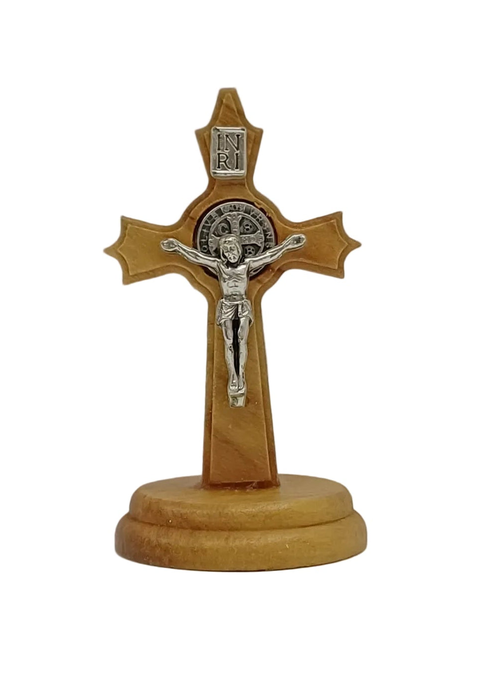 Croce di San Benedetto da appoggio, realizzata in legno di ulivo nazionale e Corpo di...