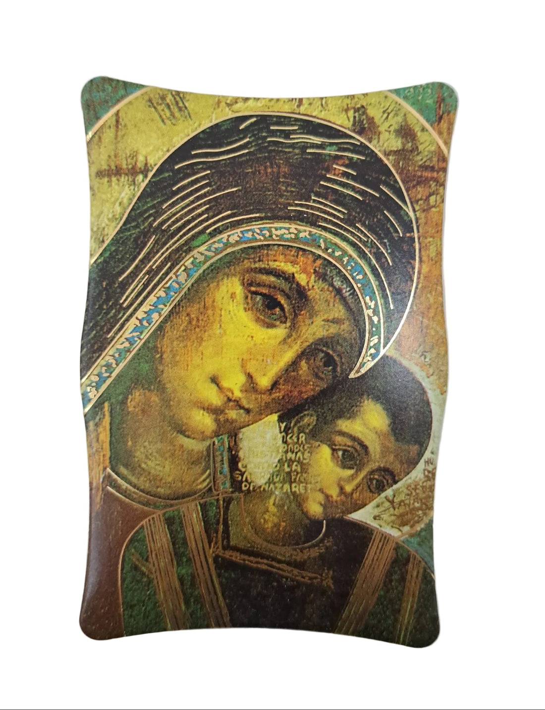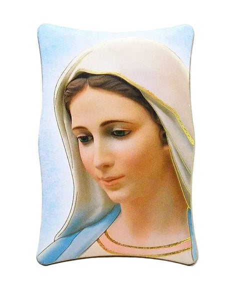 Quadretto smussato con immagine del volto di Maria e dettagli oro a caldo Dimensioni: 11x7...