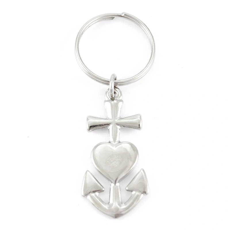 Portachiavi in metallo con i simboli delle tre virtù teologiche: fede, speranza e carità Lunghezza...