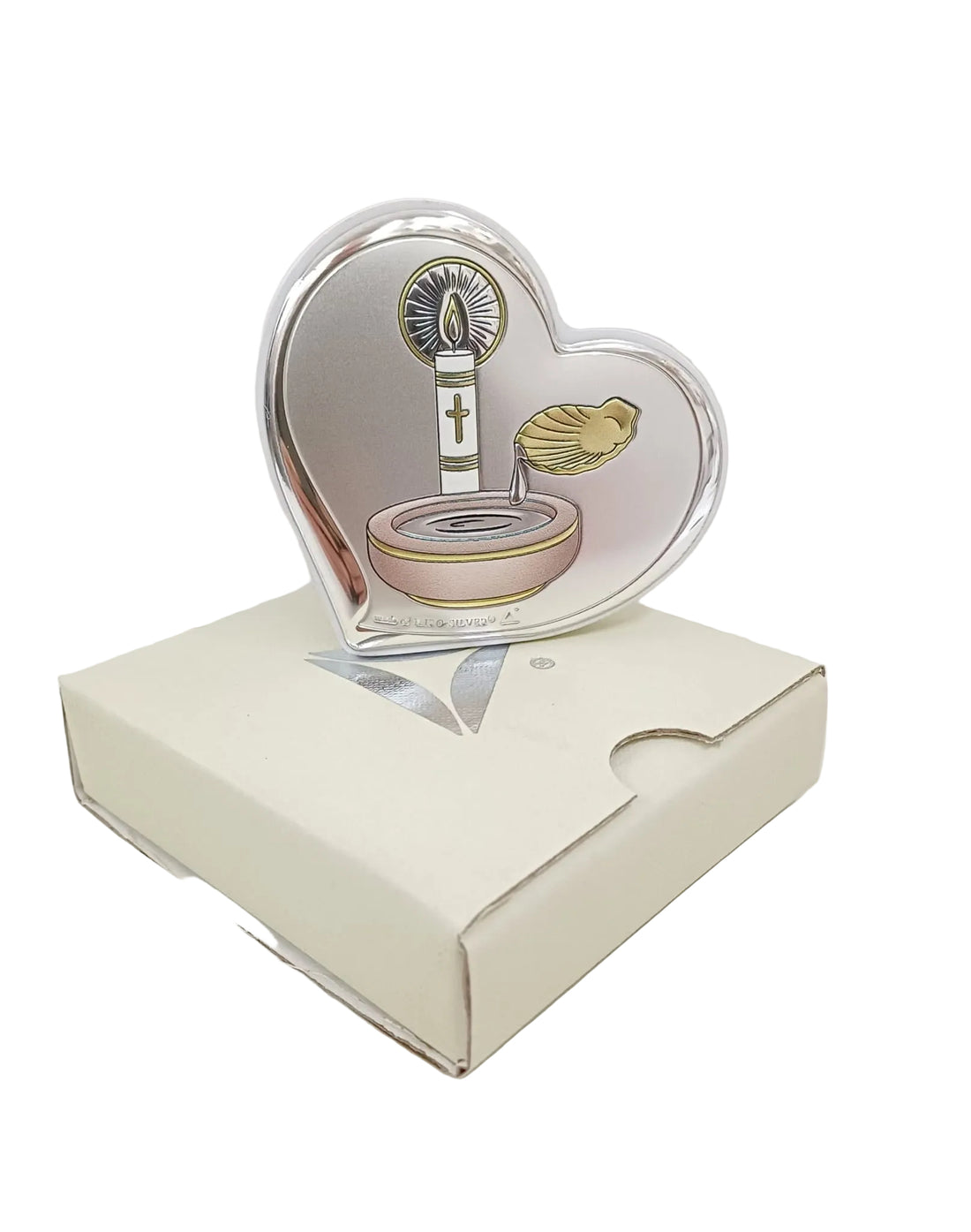 Quadretto cuore in miro-silver battesimo