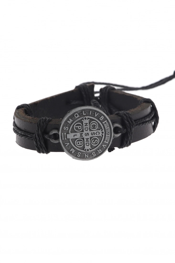 Catenina con ciondolo Croce di san Benedetto in acciaio color argento