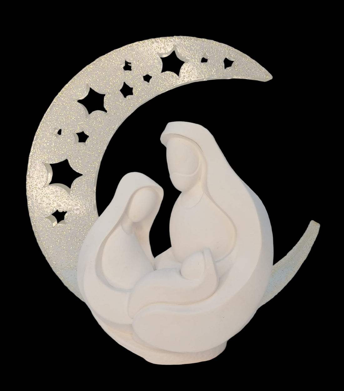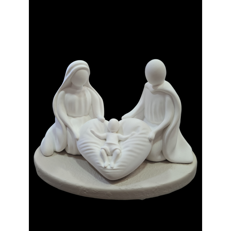Statuetta natività con ghirlanda in resina dipinta a mano