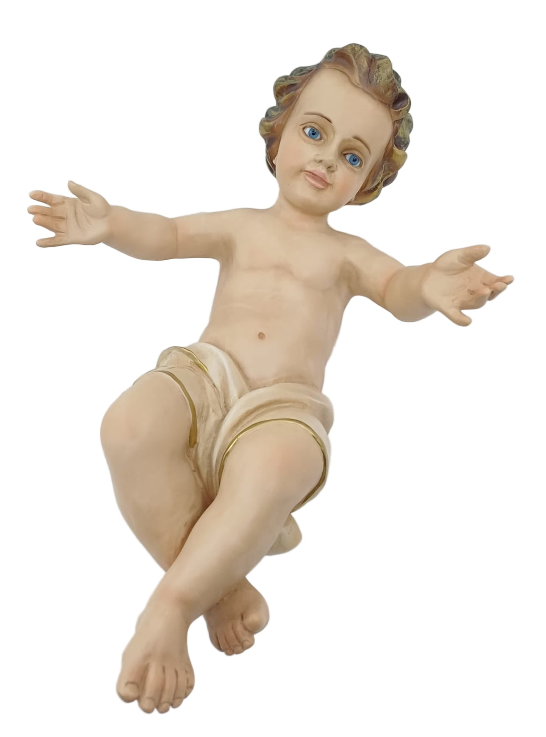 Gesù Bambino in fasce cm 30 con occhi di vetro