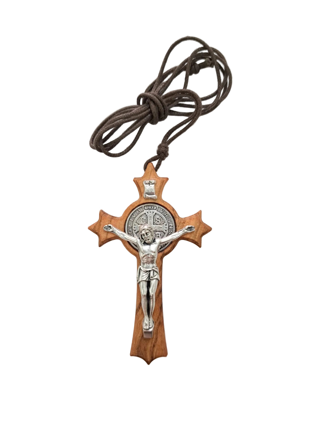 Croce trilobata San Benedetto da appoggio in legno ulivo