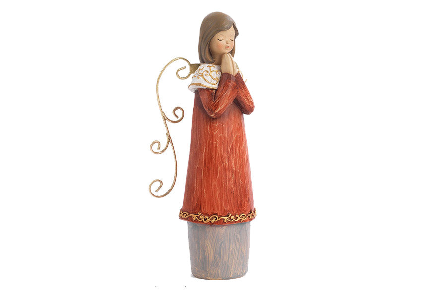 Angelo in resina effetto legno con ali stilizzate in metallo