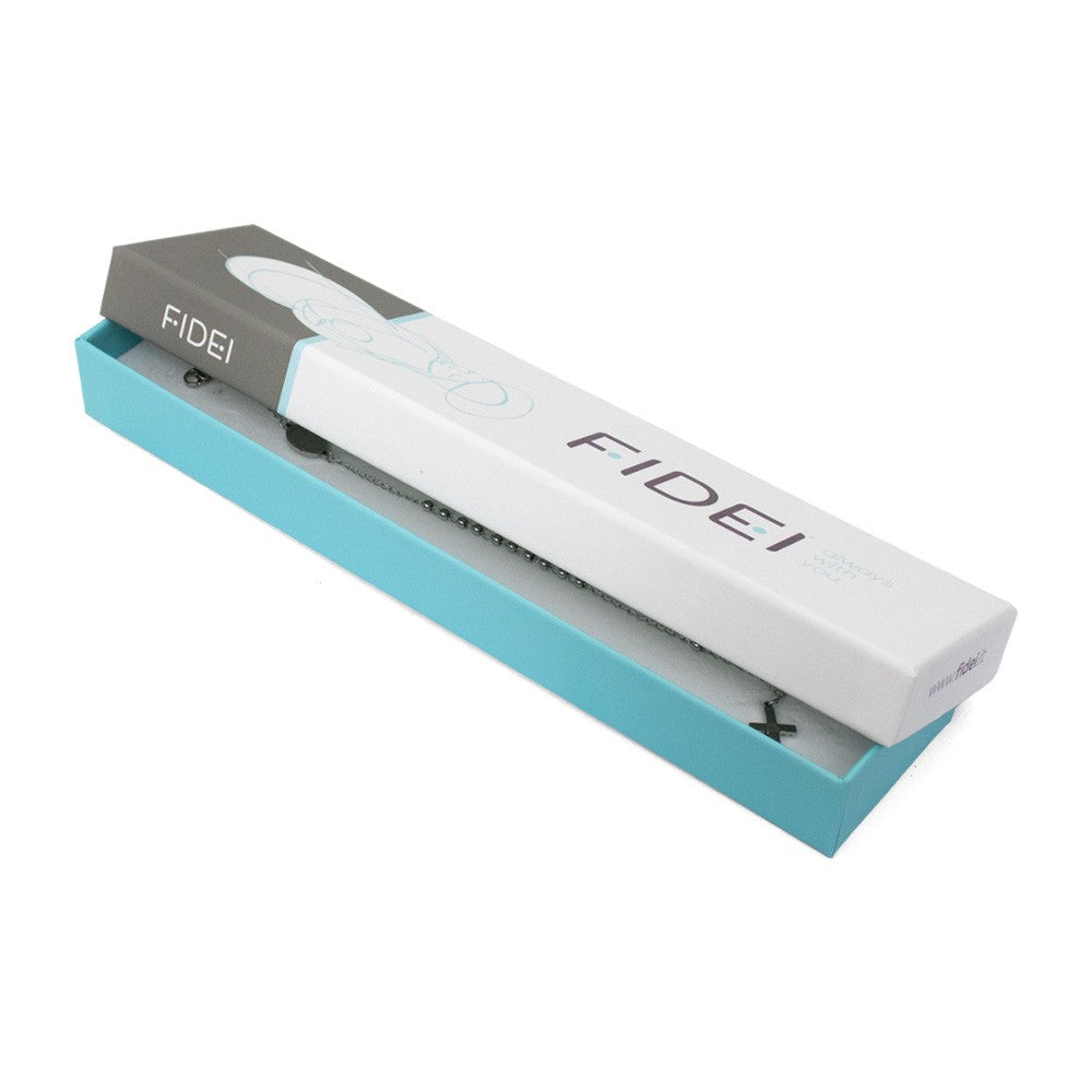 Bracciale acciaio rosario con medaglia Miracolosa, grani tondi e croce pendente.
