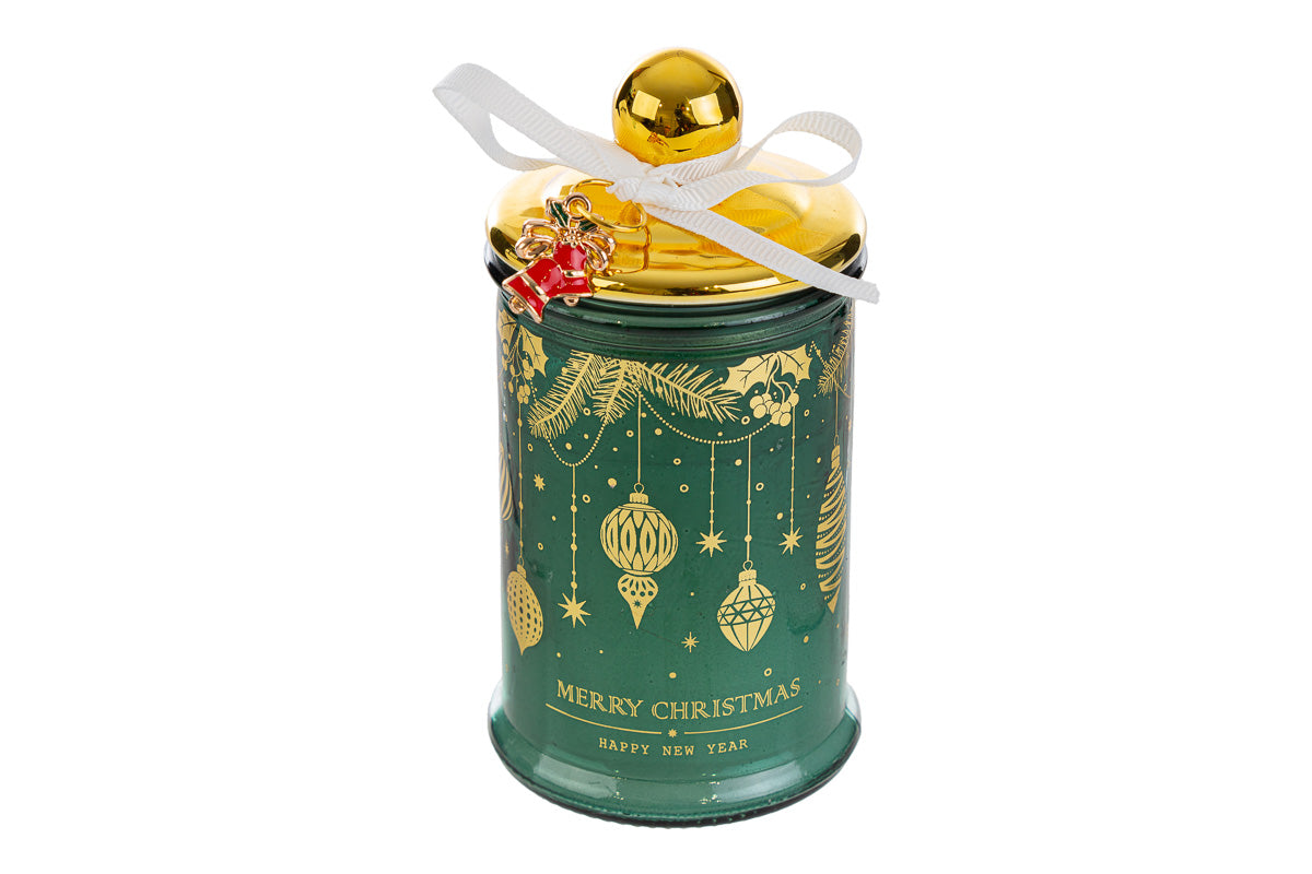 Candela profumata natalizia barattolino vetro cm 11