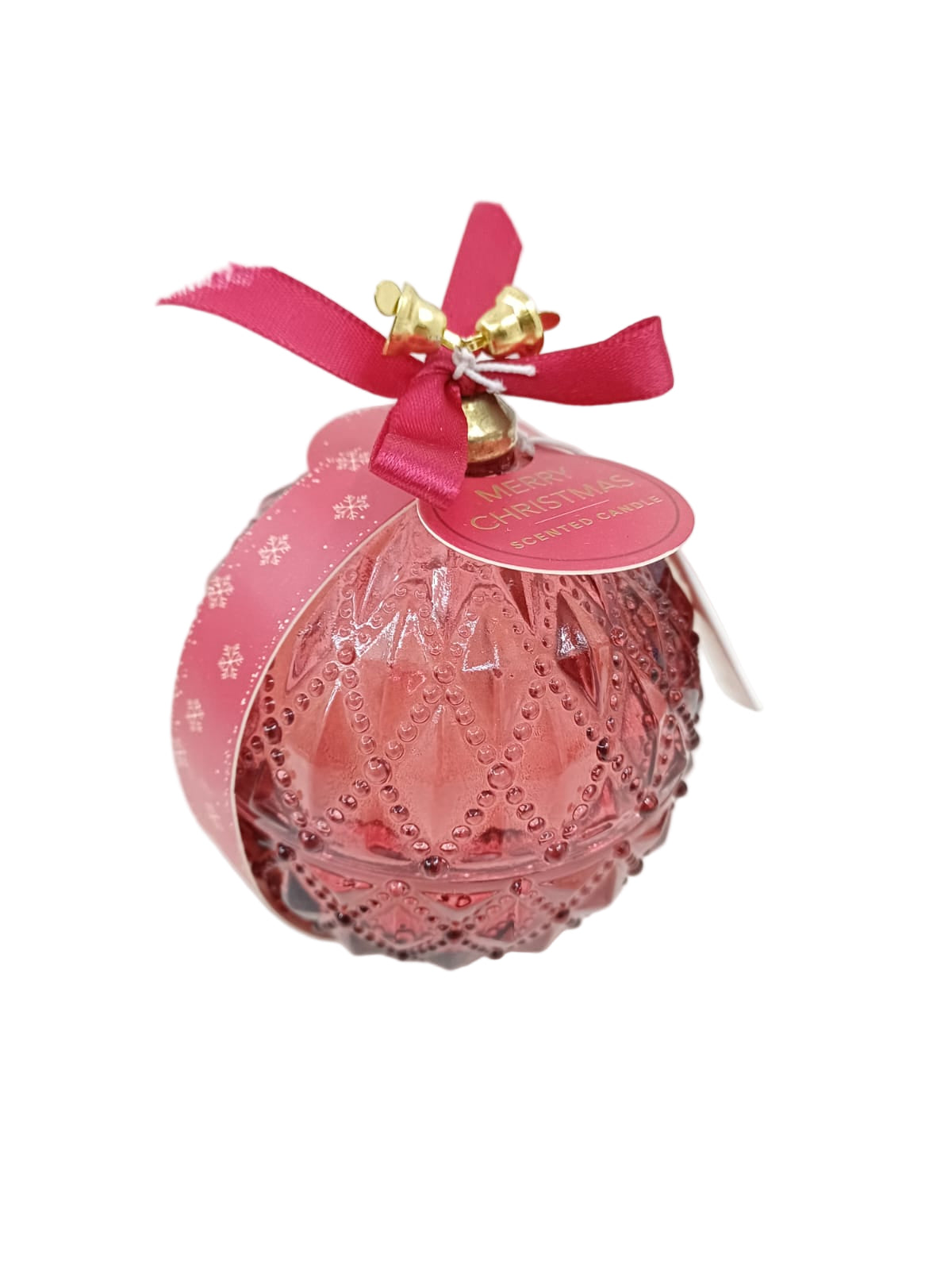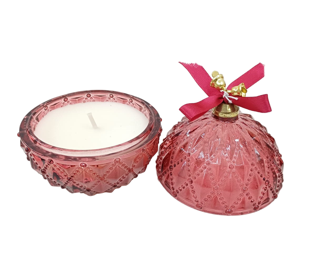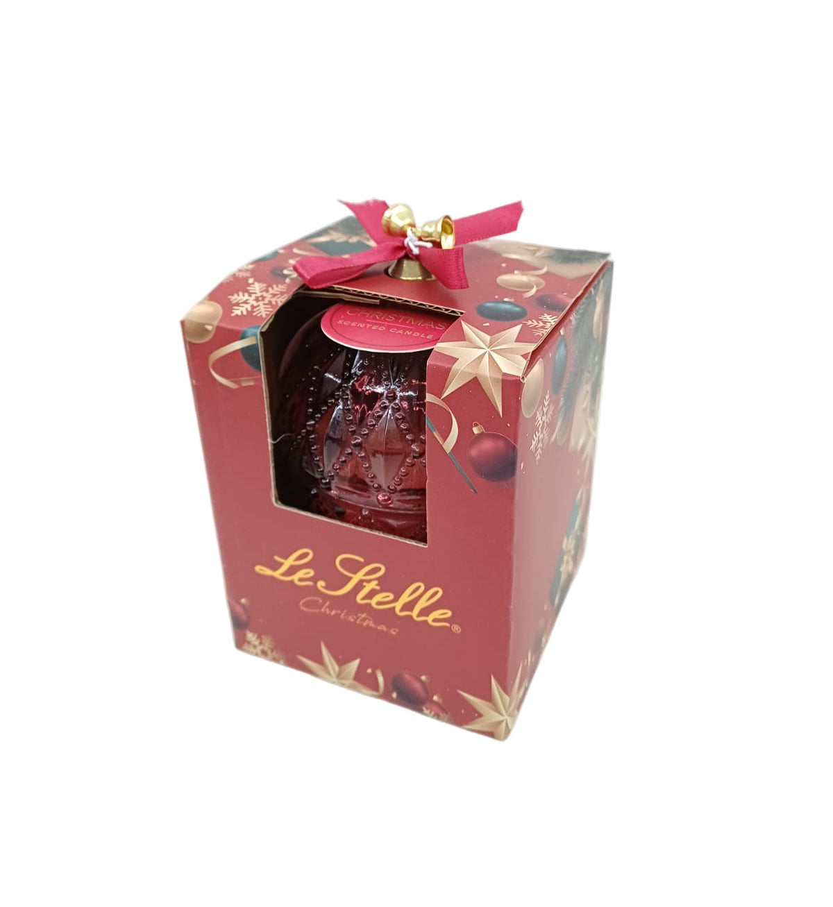 Confezione in vetro natalizia con candela disponibile in tre diversi colori