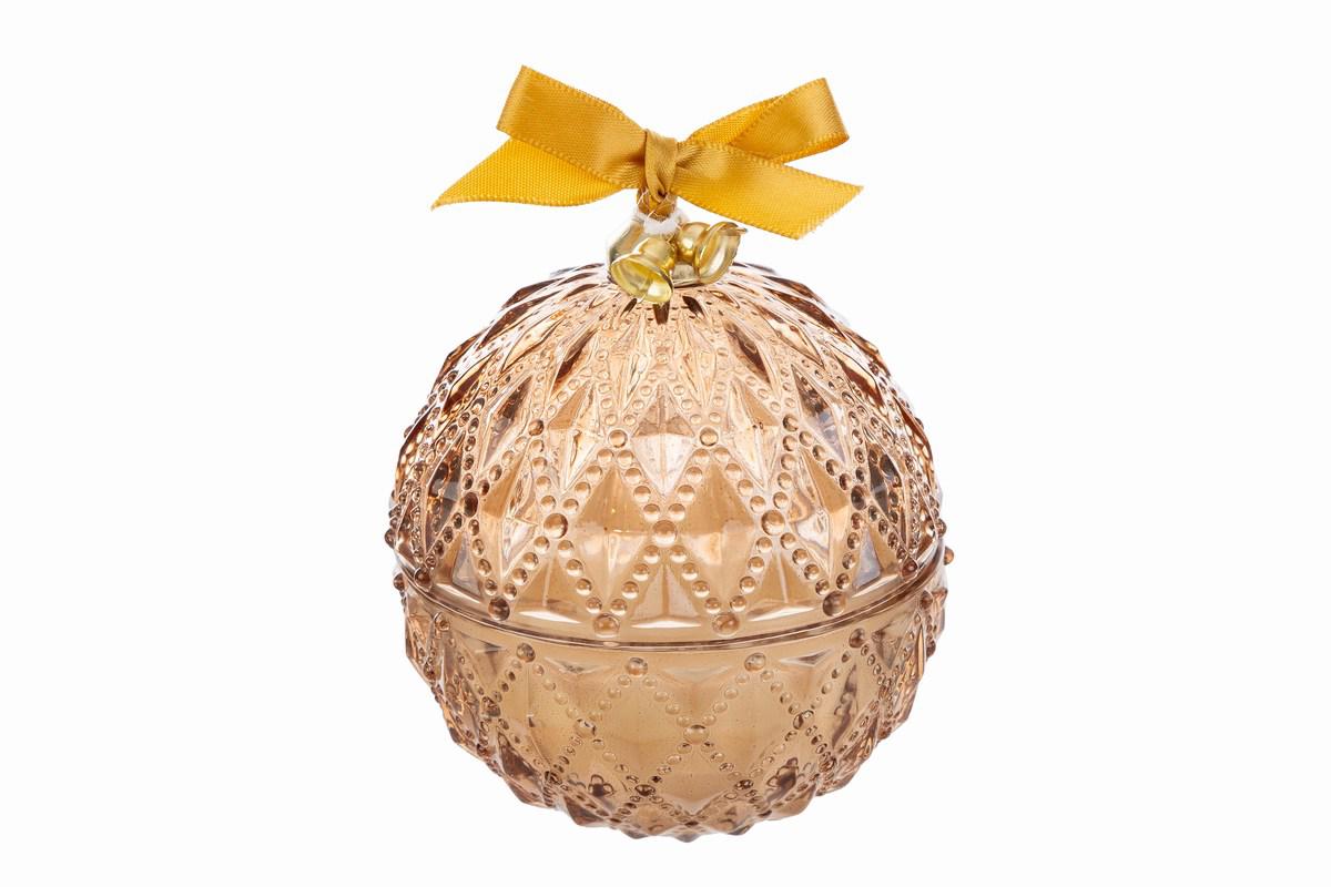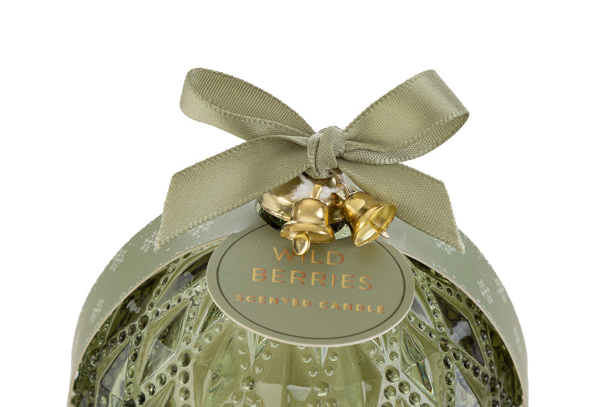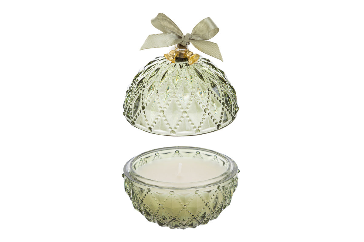 Confezione in vetro natalizia con candela disponibile in tre diversi colori
