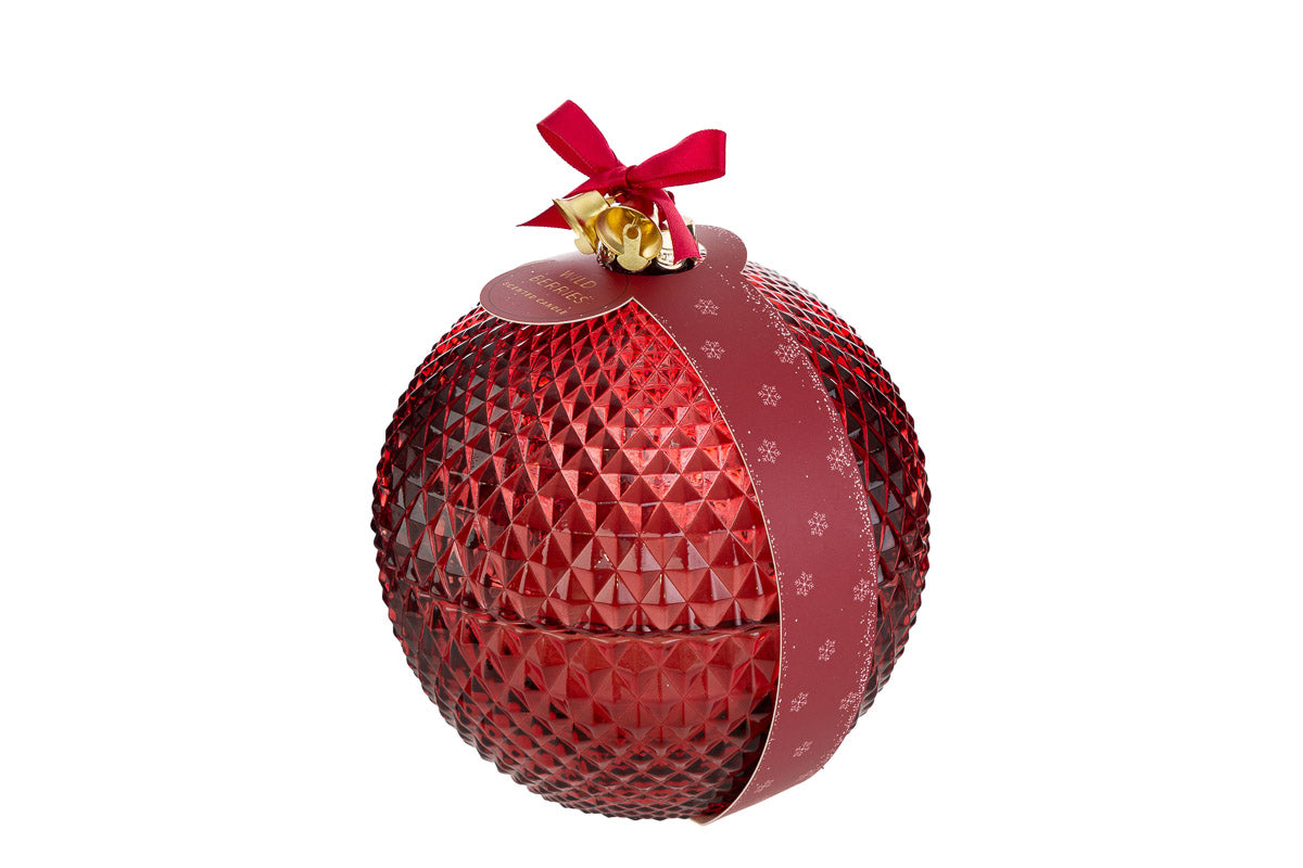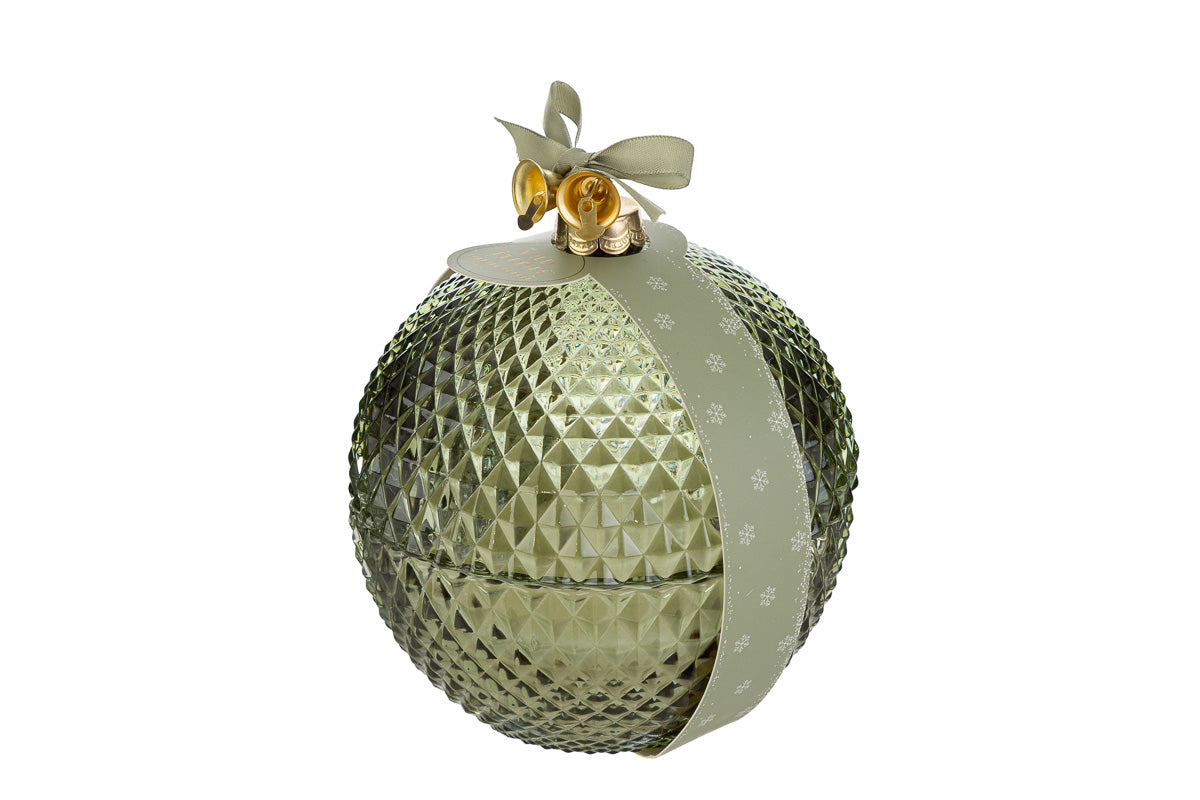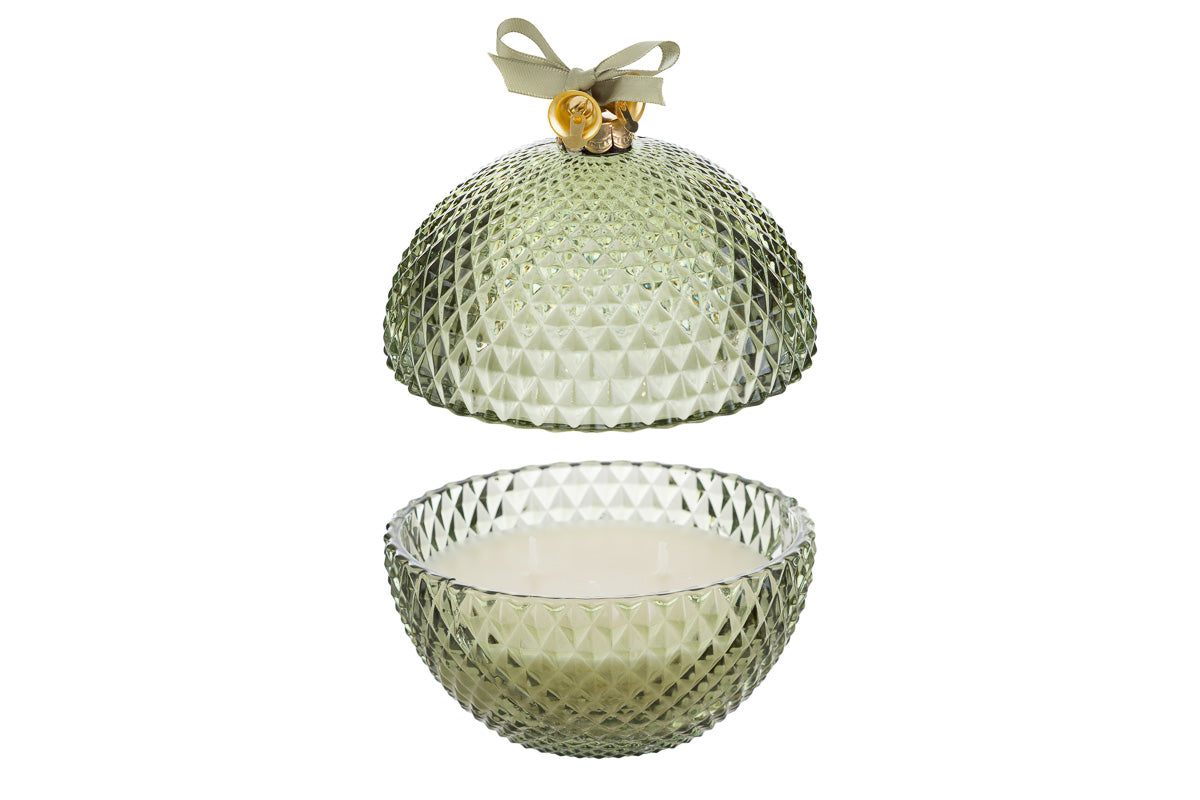 Confezione in vetro natalizia con candela disponibile in tre diversi colori