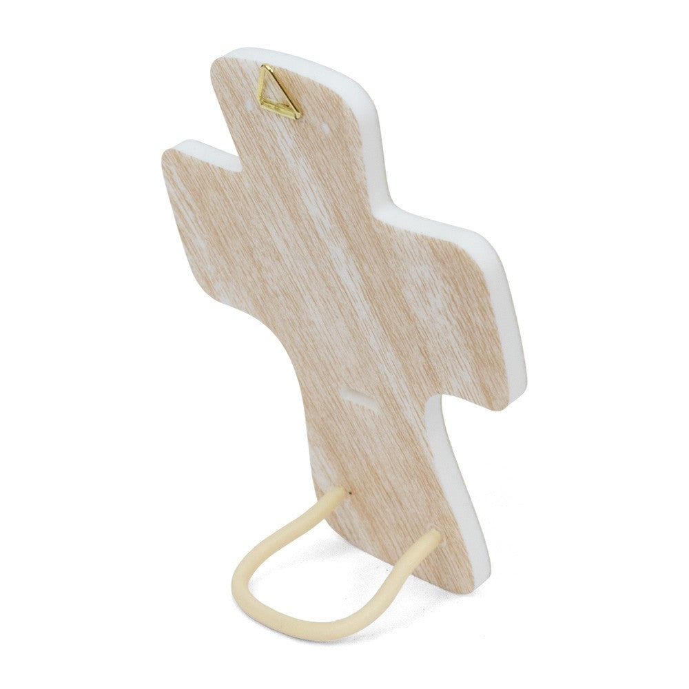 Croce con al centro l'immagine della Sacra Famiglia. Ideale per la Festa della Famiglia, è confezionata in una pratica bustina trasparente con pieghevole che contiene il rinnovo delle promesse matrimoniali, rendendola un dono perfetto per coppie, parrocchie e comunità religiose.