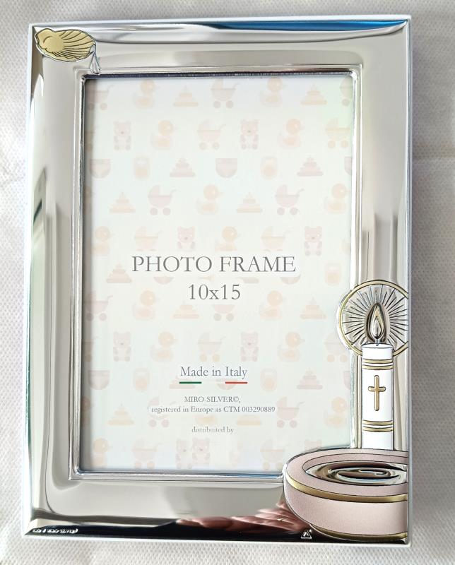 Portafoto in miro-silver con soggetto a colori con simboli Battesimo per foto 10x15
