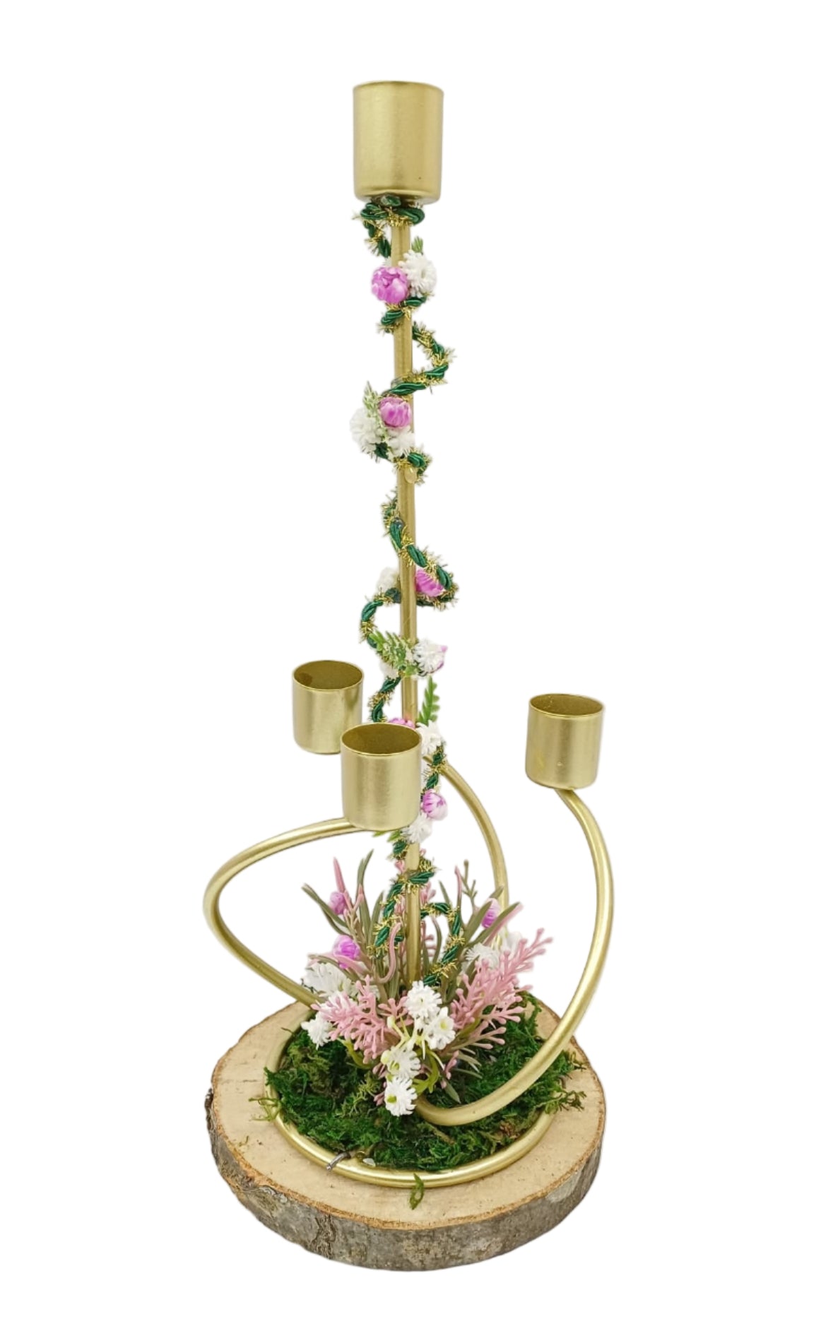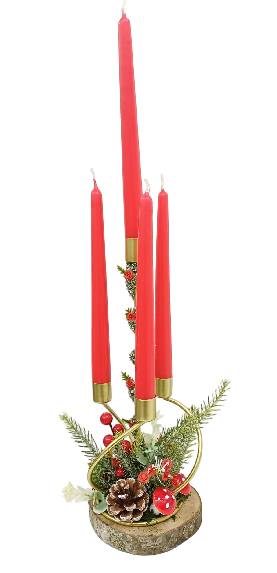 - dimensioni: base cm 14, h ( senza candele) cm 34