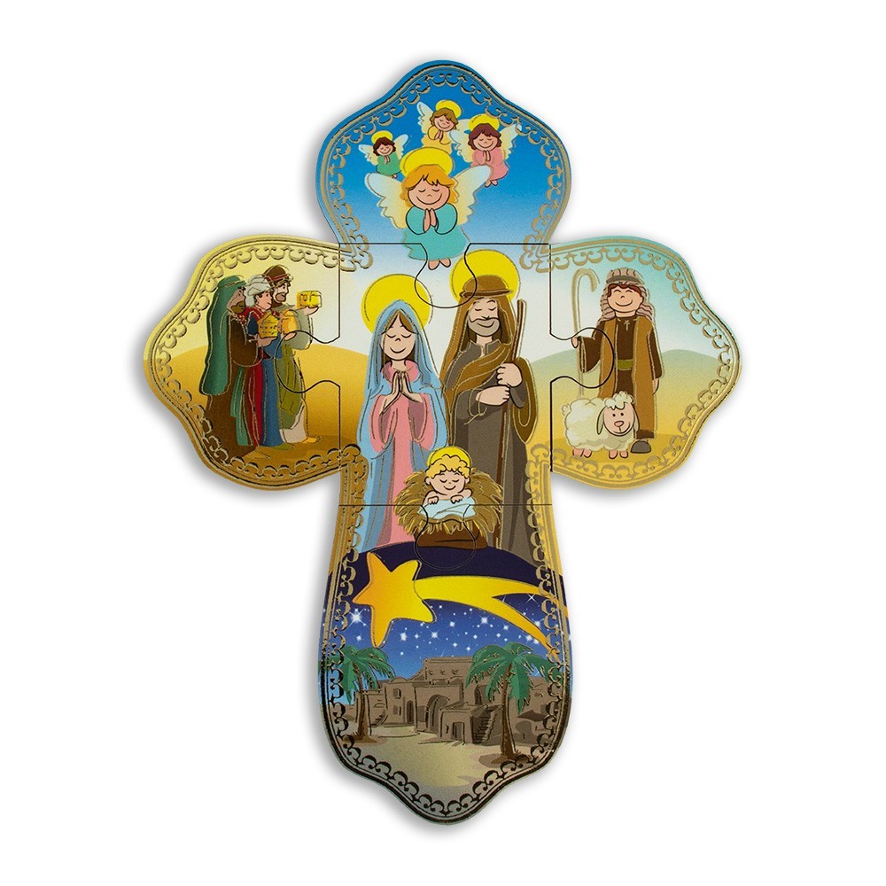 Puzzle da 5 pezzi, per comporre una croce decorata con simboli natalizi cristiani, ideale per progetti con i bambini al catechismo o in parrocchia. Si aggiunge un pezzo ogni domenica d'Avvento