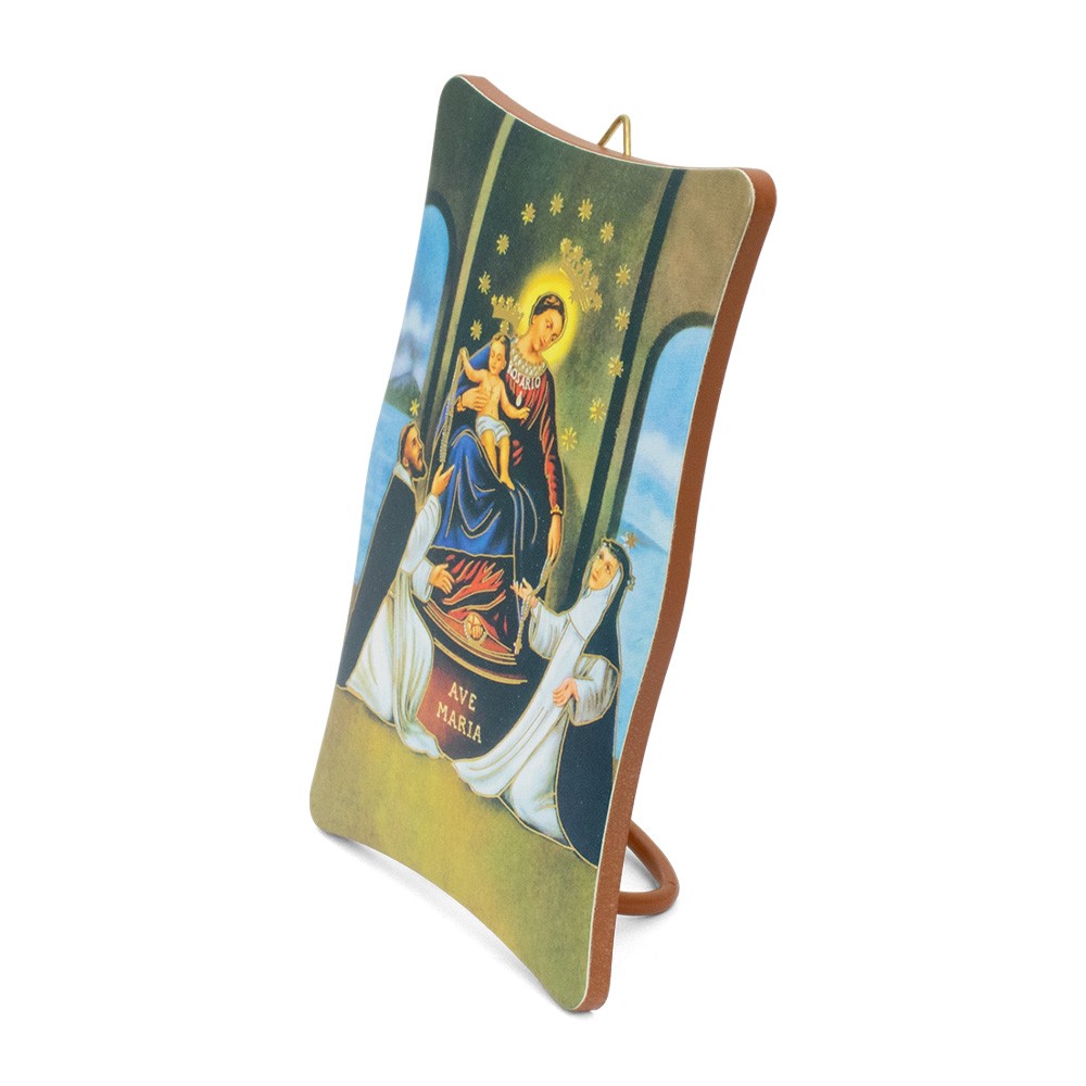 Quadretto smussato con immagine della Madonna di Pompei e dettagli oro a caldo